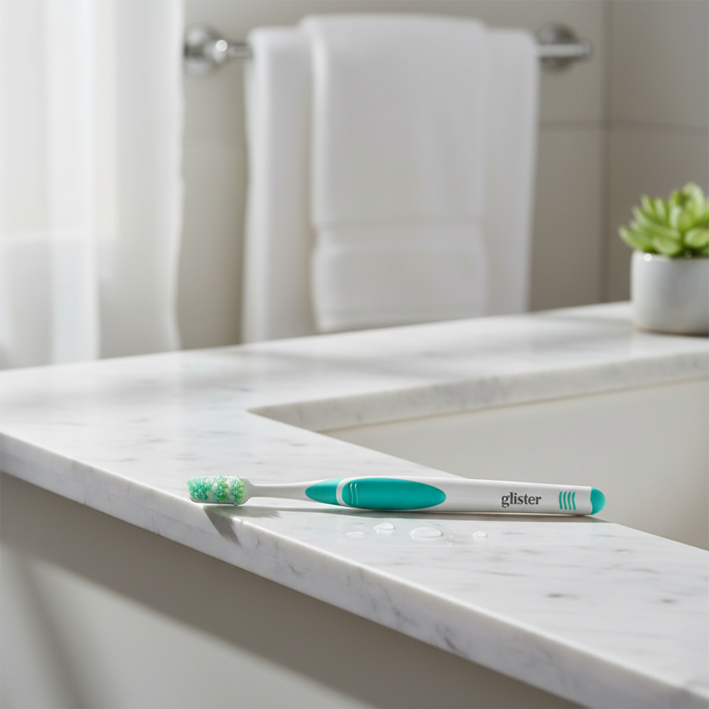 Este no es un cepillo rígido común. El Kit Glister™ cuenta con un cuello flexible patentado que absorbe el exceso de presión de tu mano, evitando que lastimes tus encías o desgastes el esmalte por cepillarte con fuerza.